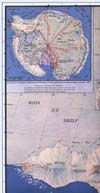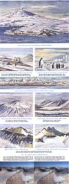 McMURDO SOUND AREA ANTARCTICA, Historical and ScientifIc Gateway to the Frozen Continent: Published in 1985, the 24" x 36" map is a product of Dee Molenaar's visit to Antarctica in 1980. The trip was supported by the National Science Foundation (NSF) Division of Polar Programs, for the purpose of aereal photography needed for the map preparation. The map margin includes several paintings of areas of scenic, geologic, and historic interest, and the sheet's backside has a text, along with maps and sketches, which provide an introductory overview of Antarctica and the McMurdo areathe human history, geologic and climatic settings, plant, animal, fish, and birdlifeand the scientific research being carried out "Down Under." Also included are descriptions of the points of interest on Ross Island and in the McMurdo Station-Scott Base complex, along with a list of references and background literature. This is an excellent wall chart for the geography and earth-sciences classrooms and for those fascinated by the polar regions and their historic explorations. |